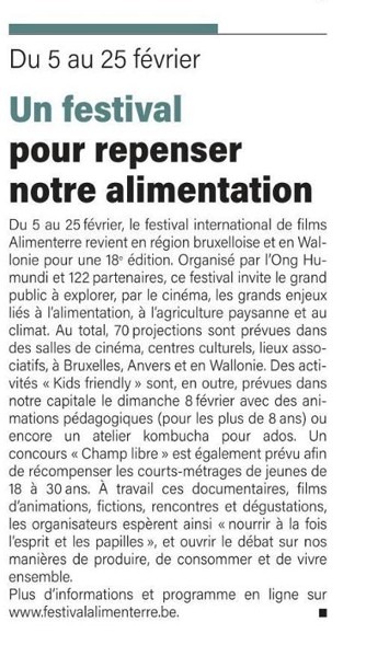 Bienvenue dans l’espace presse. Vous y trouverez le matériel promotionnel du festival ALIMENTERRE, notre dossier de presse et nos différents communiqués.